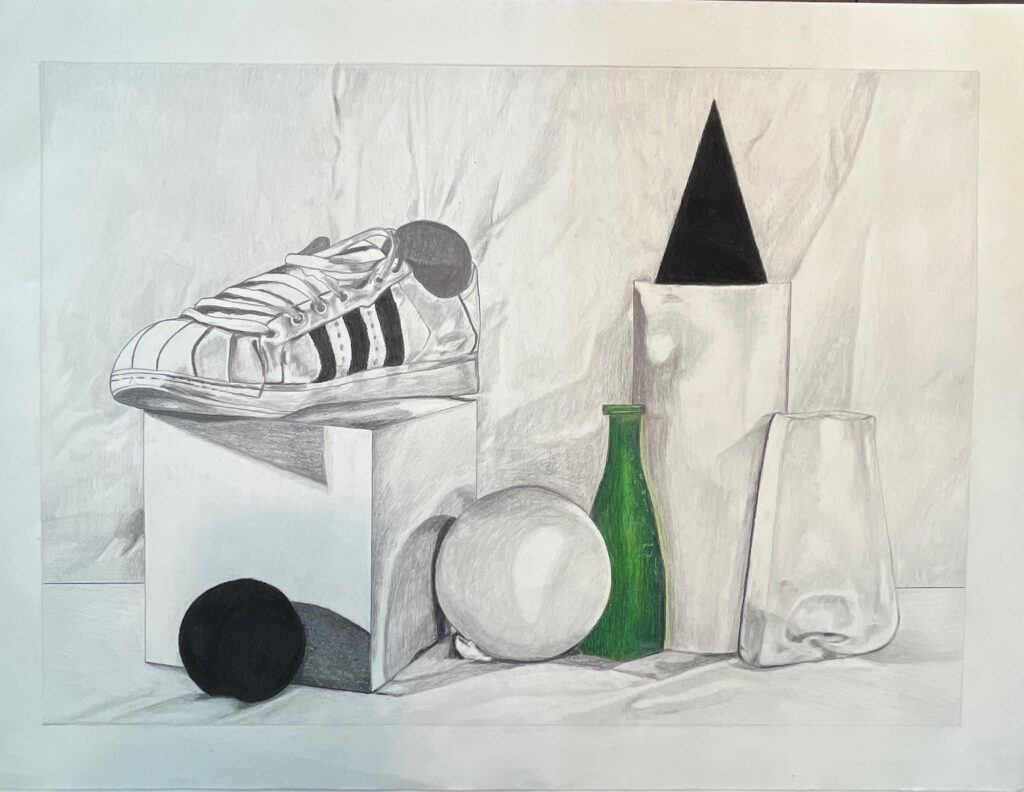 Still Life – Adidas back to the Gallery My Adidas 18″ x 24″ Graphite | charcoal | colored pencil on paper